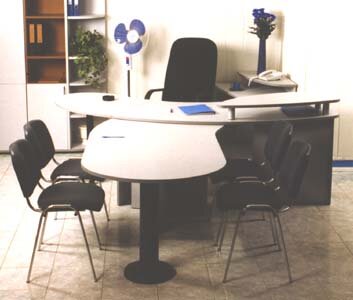За столом-приставкой для совещаний (два типоразмера, левое и правое расположение) можно разместить от семи до девяти человек.